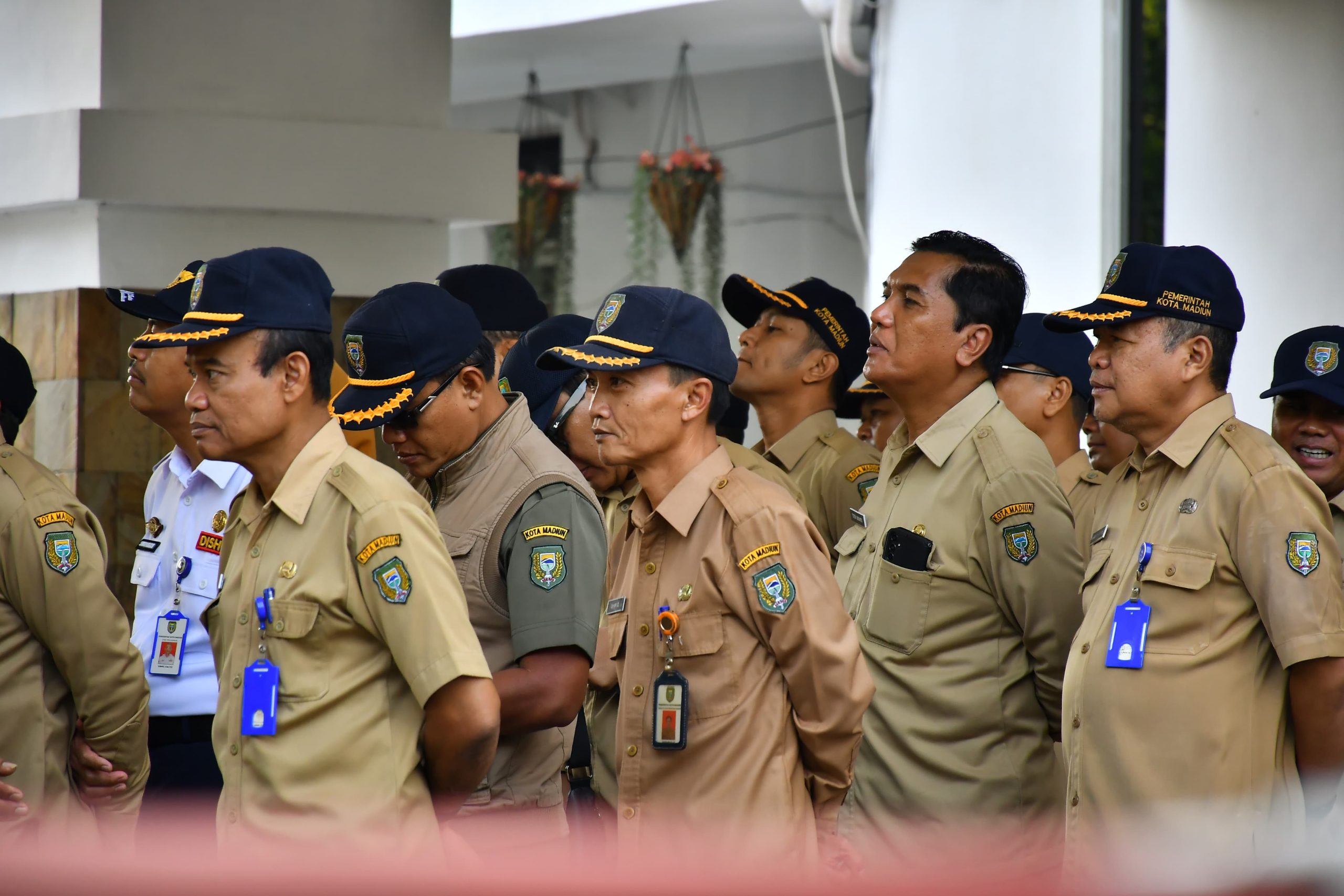 Apel tersebut dihadiri oleh sejumlah pejabat utama di lingkungan Pemkot Madiun. Salah satunya, Kepala Dinas Pekerjaan Umum dan Penataan Ruang (DPUPR) Kota Madiun Thariq Megah.